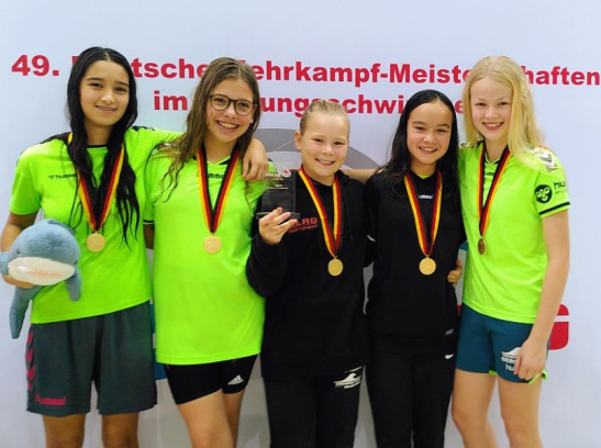 Bei den 49. Deutschen Meisterschaften im Rettungsschwimmen in Hannover erkämpften sich Nachwuchstalente des Landesverbandes Schleswig-Holstein drei Medaillen. Deutsche Meisterinnen wurde die Mannschaft der Altersklasse 12 weiblich aus Norderstedt. Enne-Lotte Schmidt, Leonie Rathsack, Elin Doray, Xuan-Mai Wendland und Greta Urban wurden ihrer Favoritenrolle gerecht und holten Platz eins im Mannschaftsmehrkampf. Für Trainer Malte Geßner war es nach 2019 und 2021 bereits der dritte Titelgewinn in Folge – 2020 waren die Meisterschaften aufgrund der Corona-Pandemie abgesagt worden. In der 4 x 50-Meter-Hindernisstaffel stellten die Schülerinnen zudem einen neuen Deutschen Rekord auf. Während die an Position eins gesetzten Youngster ihrer Favoritenrolle gerecht wurden, sorgten die Norderstedte ... Mehr erfahren